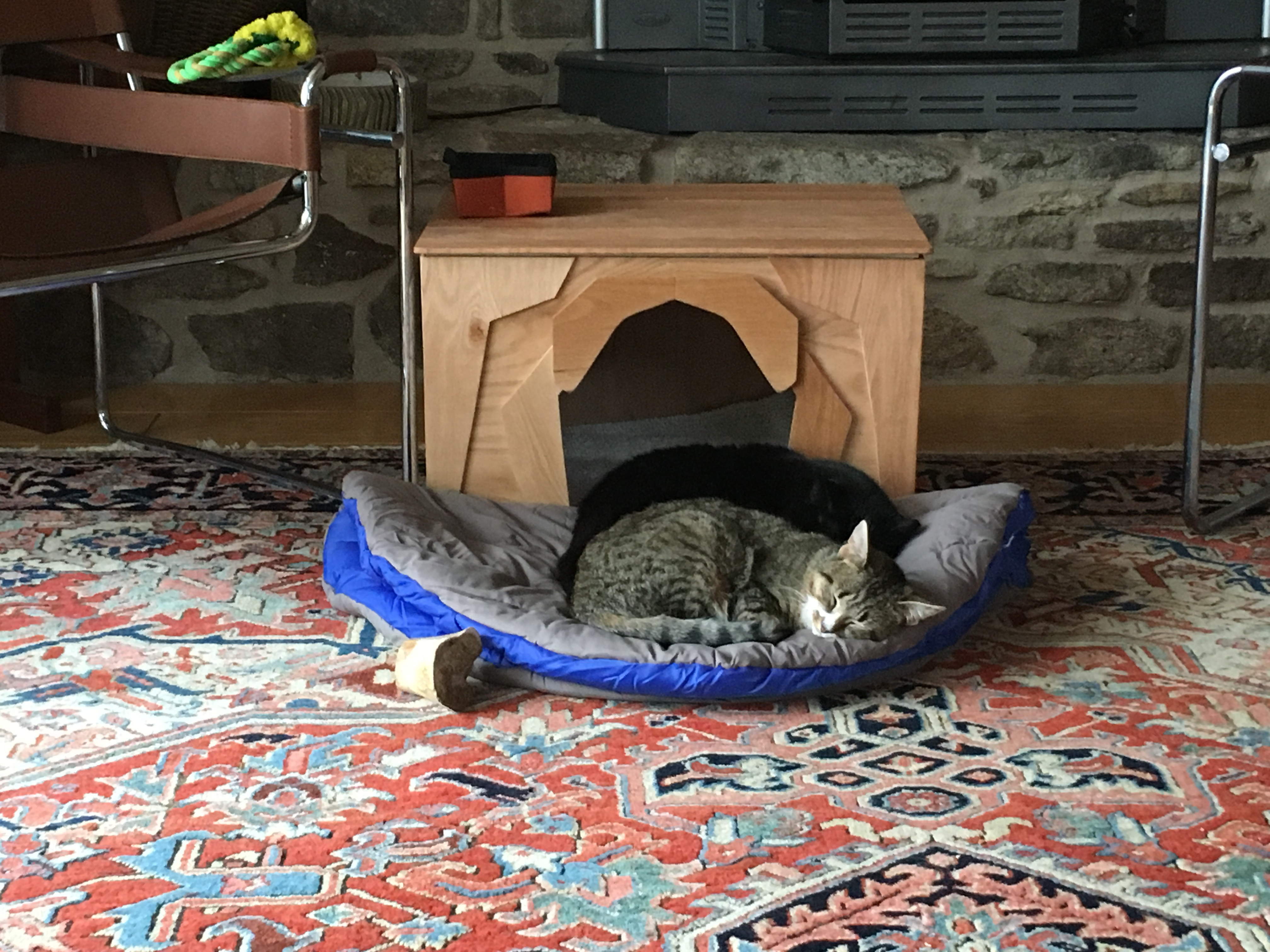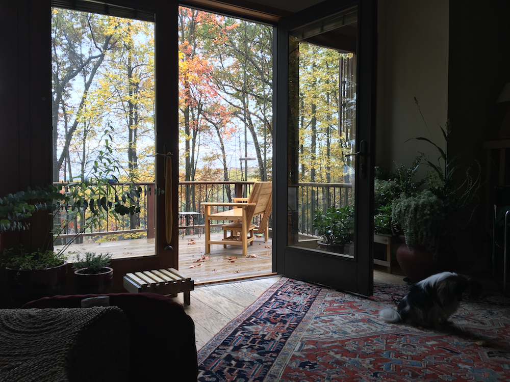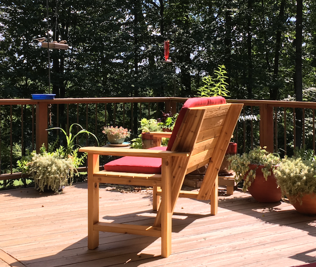 Everything that we produce at TimberMorphosis originally came into being because of a need in our home: lamps to replace the flimsy and ungainly torchieres purchased at an office supply store, a bench to watch the dawn from our deck; a sanctuary in which our dog could guard his food from the curious cats. We have tried to create works of wood that would harmonize with the simplicity and beauty of our surroundings in Windfall, and we hope that they will find a place in your home, classroom, or office as well.